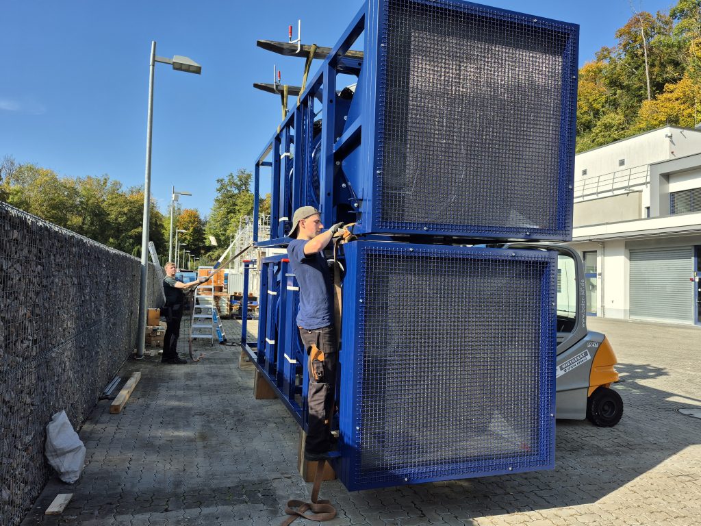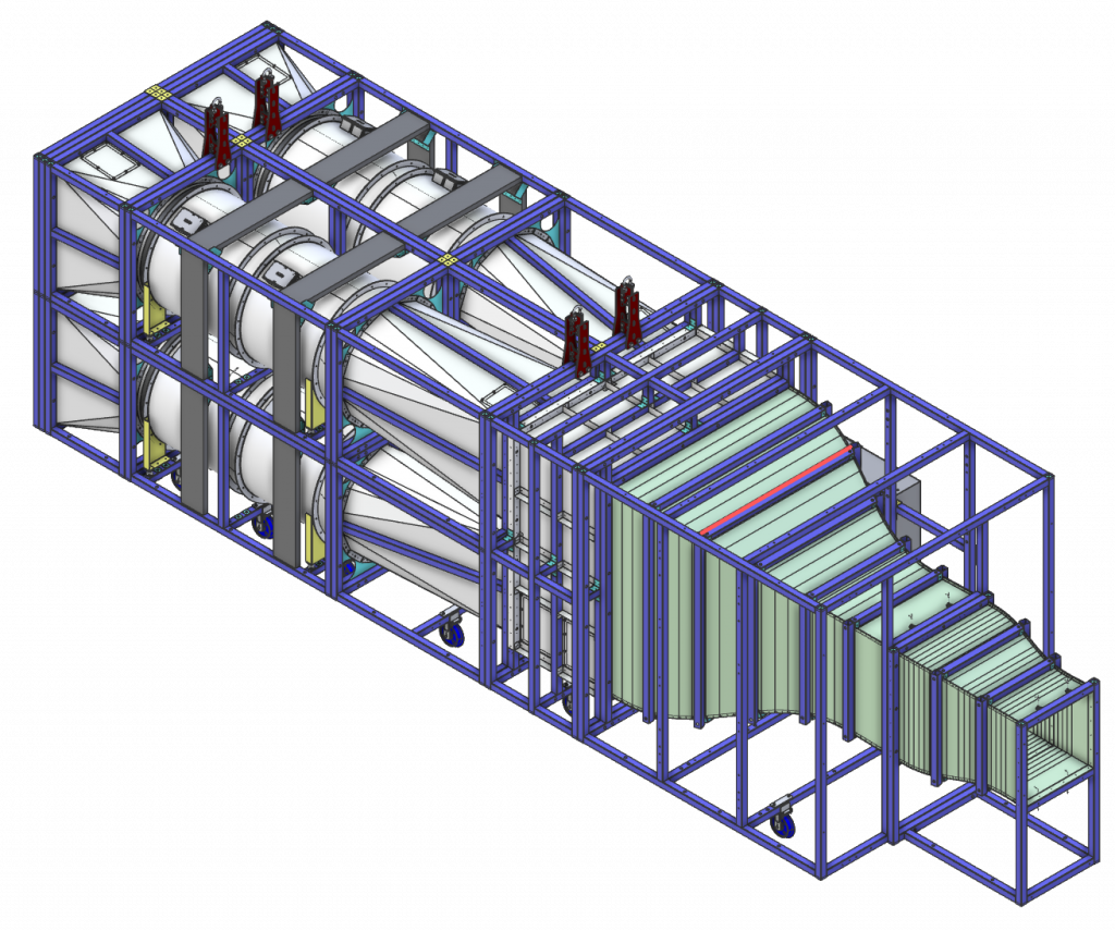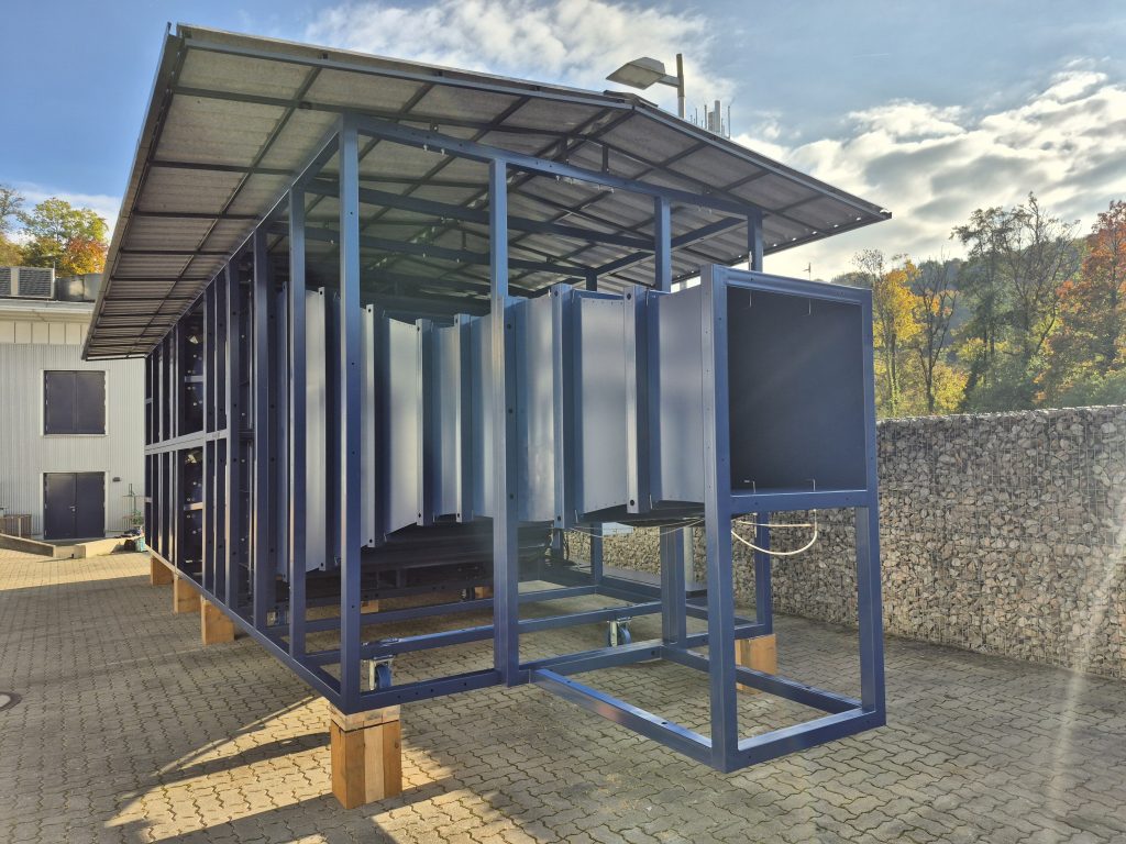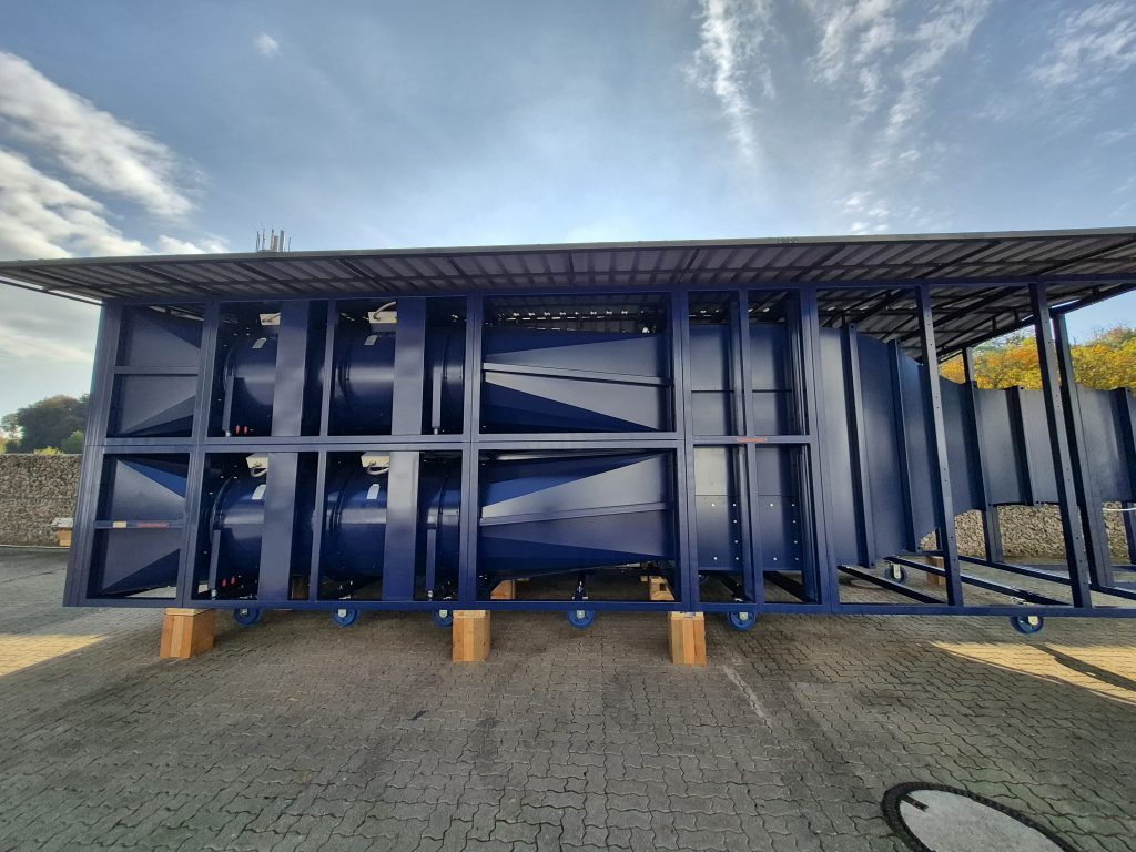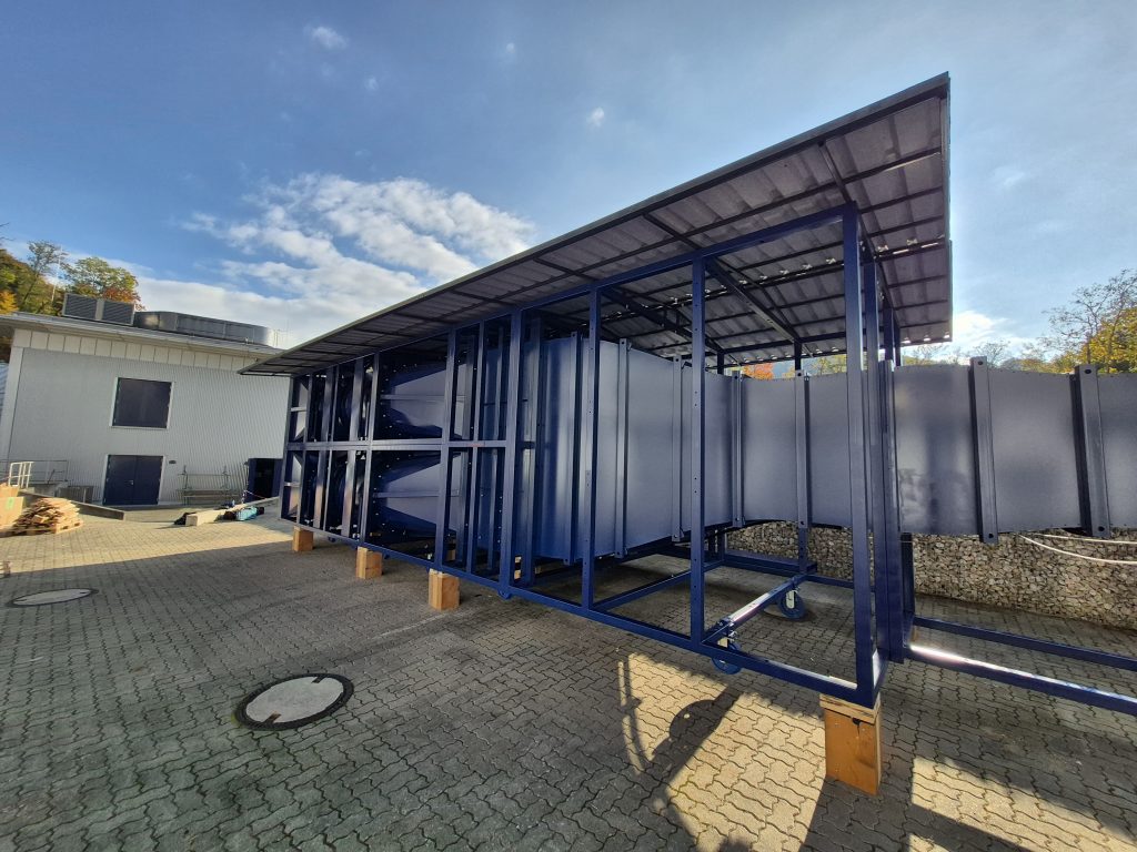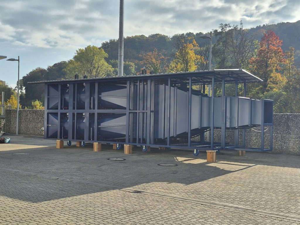 Der WT387 besteht aus einer Stahlprofil-Schweißkonstruktion sowie verzinkten Blechen. Er wird in Segmenten geliefert, sodass die Vorort-Montage unserer Ingenieure vereinfacht wird.  Die Besonderheit des WT387 ist, dass er in vier kleinere Windkanälen segmentiert ist. Über eine gemeinsame Düse werden diese Kanäle miteinander verbunden.