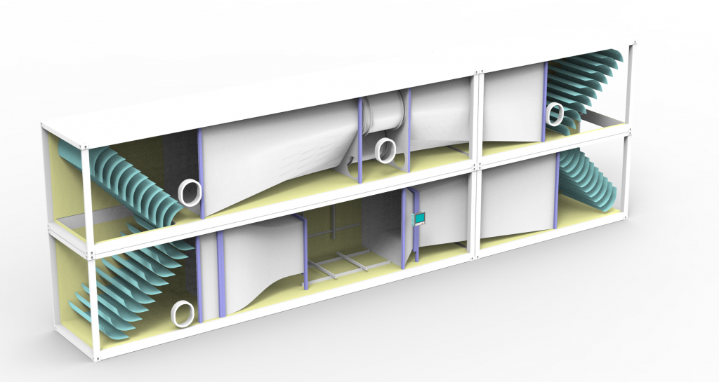 Der WT397 ist ein speziell konzipierter Windkanal mit geschlossenem Kreislauf (Closed Loop), der für die Installation und den direkten Betrieb in Containern ausgelegt ist. Die gesamte Anlage erstreckt sich über zwei Stockwerke und muss in einem 40 ft und einem 20 ft High-Cube (HC) Container untergebracht werden.